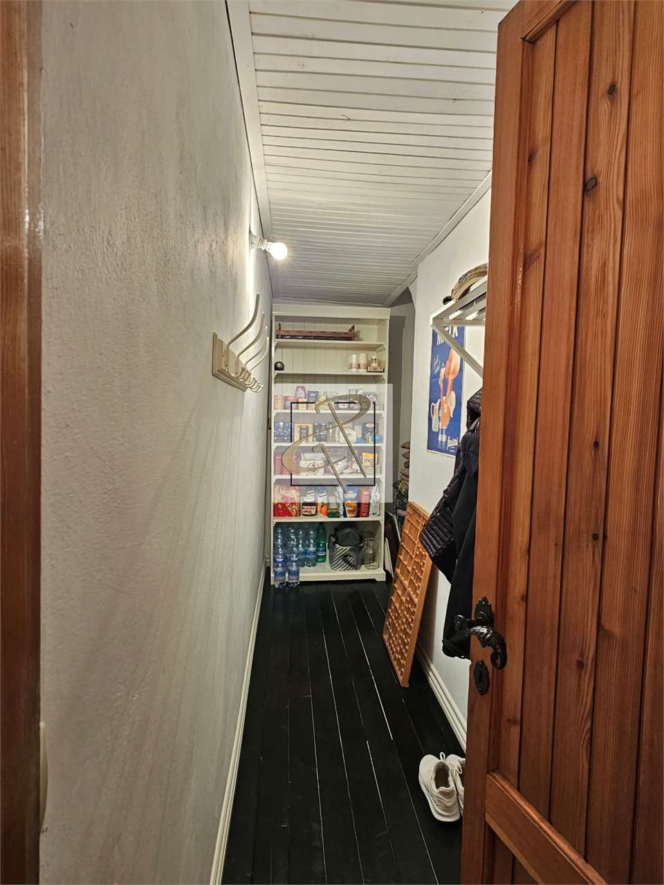 Ein kleiner Flur führt zu einem gemütlichen Wohnzimmer mit Ofen und einem Abstellraum, der als Speisekammer/ Abstellraum genutzt werden kann.