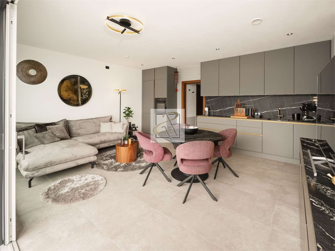 Zum Verkauf steht eine bezugsfertige Dreizimmerwohnung mit offenem Wohn- und Essbereich, eleganter Küche und großzügiger Terrasse in Südwestlage mit spektakulärem Panorama. Zwei Schlafzimmer mit Balkon, zwei stilvolle Bäder mit Dusch-WC sowie eine hochwertige Einrichtung, bieten höchsten Wohnkomfort.