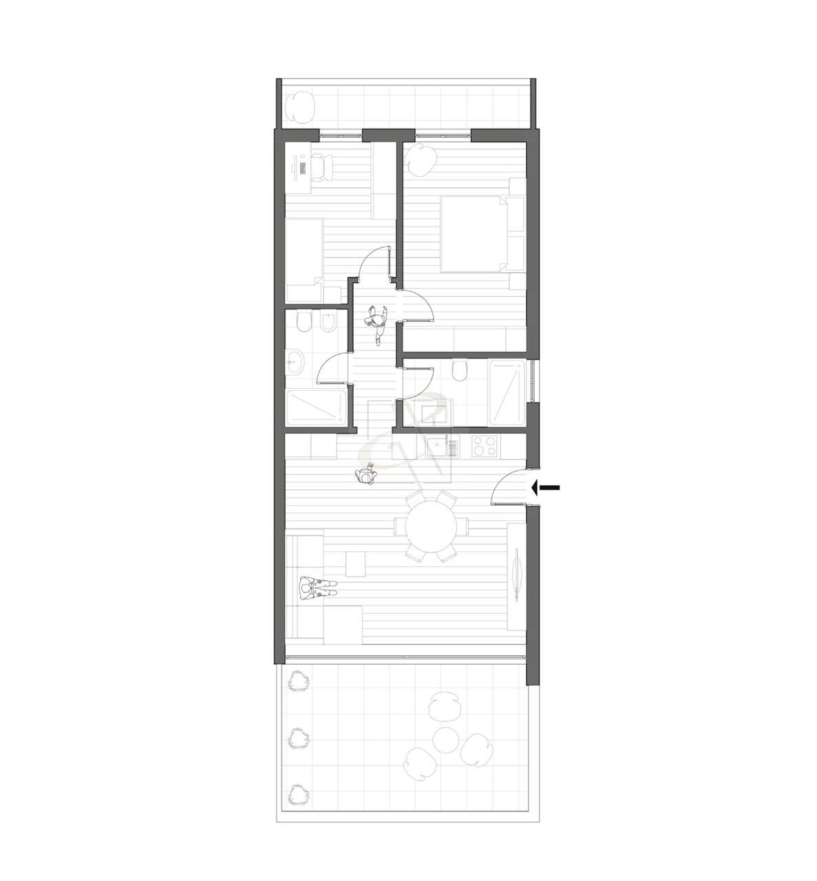 Zur gemeinschaftlichen Nutzung stehen ein Pool mit Sonnenterrasse und ein Badesteg mit direktem Seezugang bereit. Das Ortszentrum von Castelletto di Brenzone ist bequem zu Fuß erreichbar. Die energieeffiziente Bauweise und die außergewöhnliche Lage machen diese Wohnung zum idealen Rückzugsort.